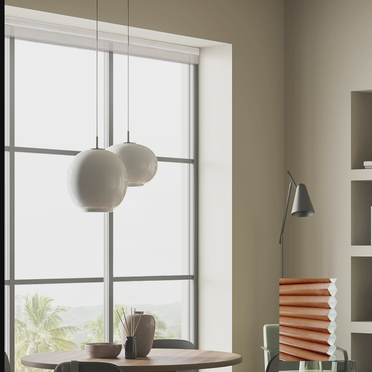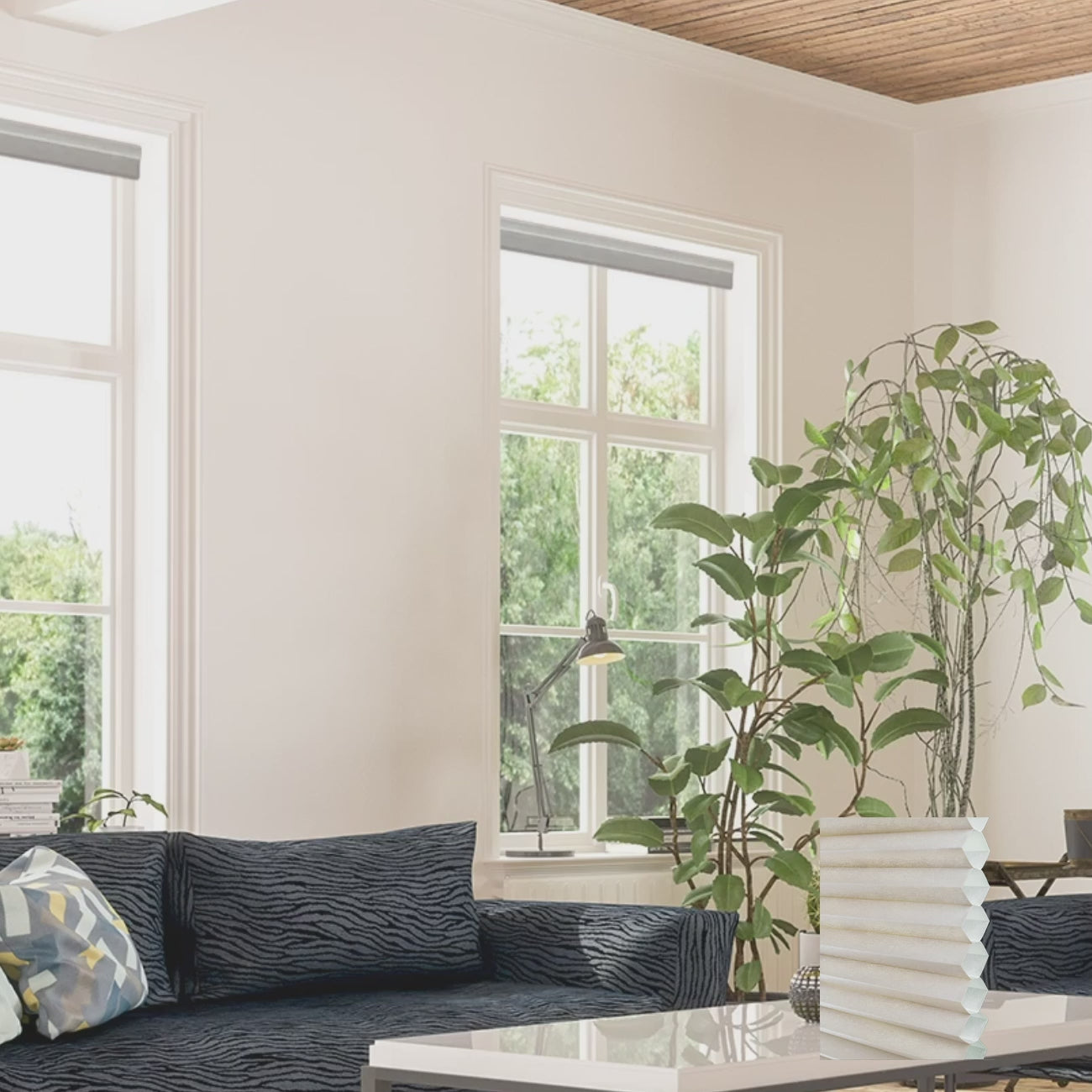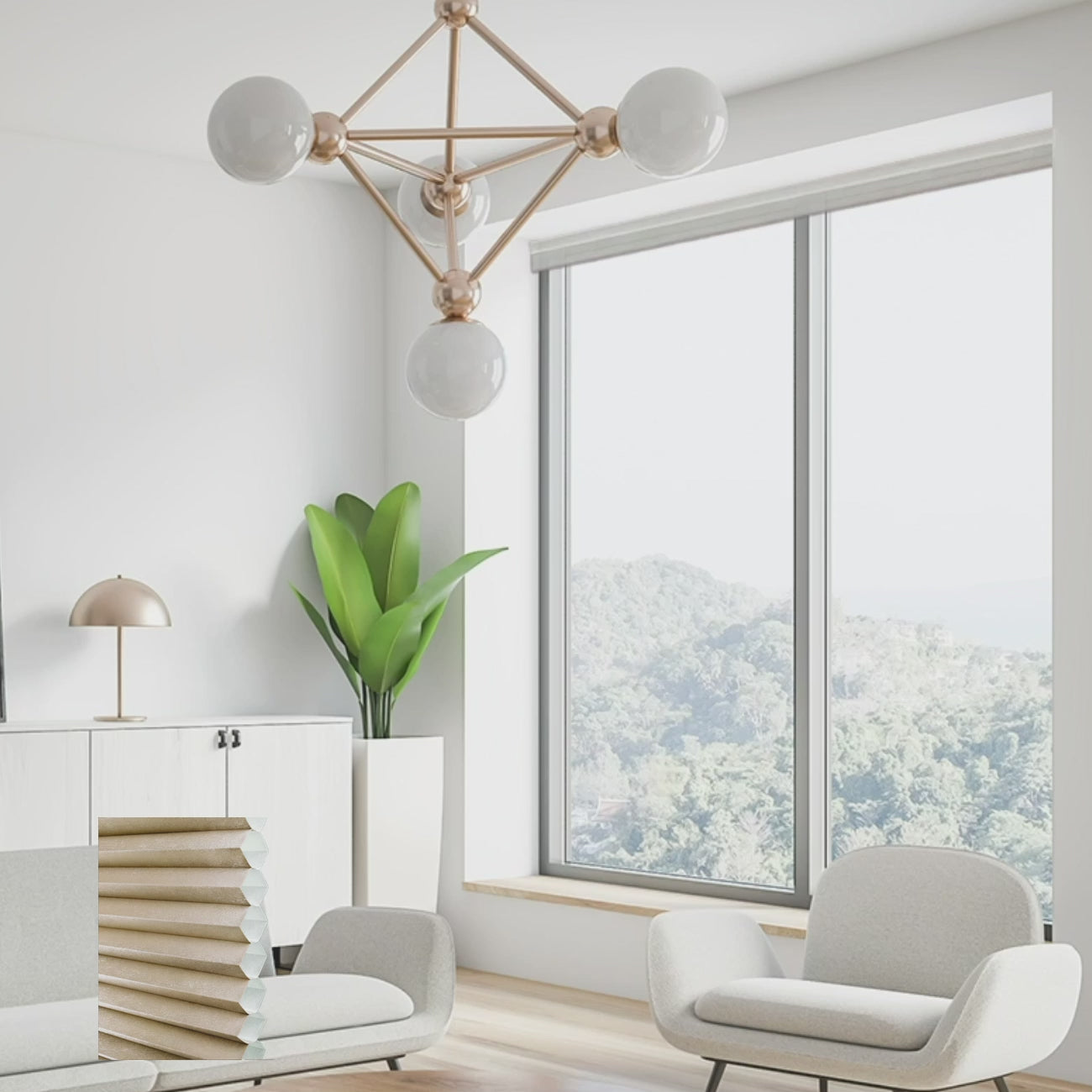 Living room honeycomb blinds